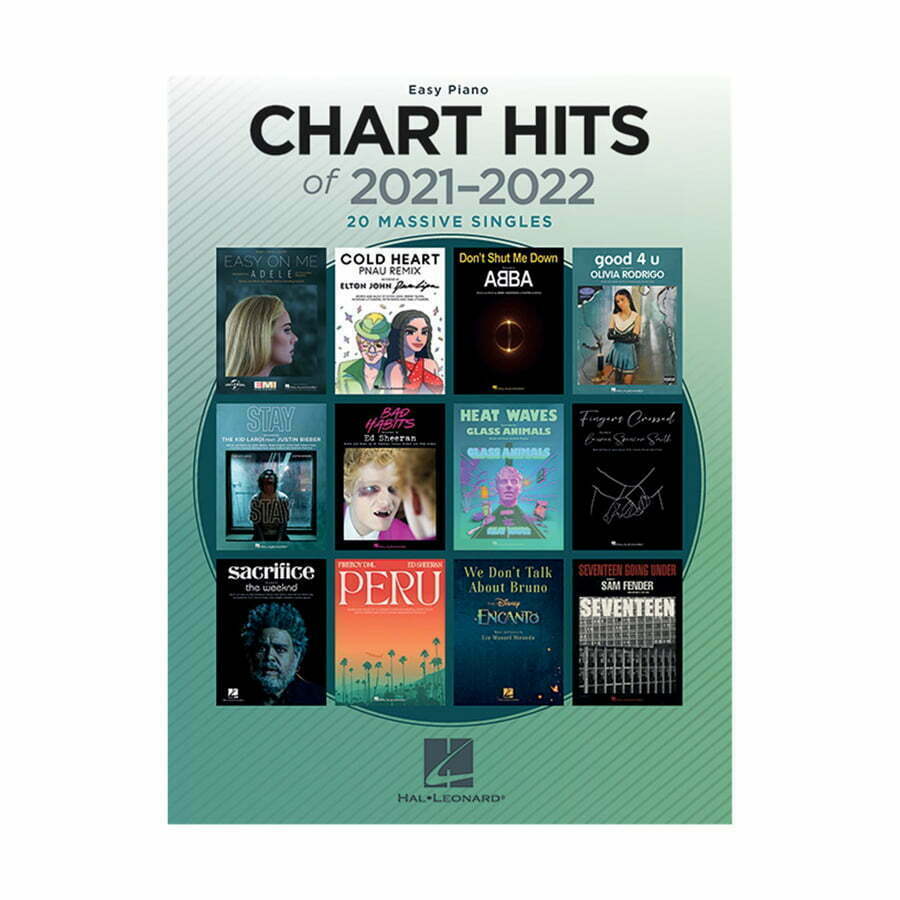 20 massive hits from 2021-2022, specially arranged for easy piano with chord symbols and full lyrics. Includes ‘Easy on Me’, ‘Heat Waves’, ‘Seventeen Going Under’, ‘We Don’t Talk About Bruno’, and many more!