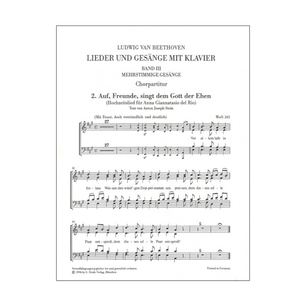 - Auf, Freunde, singt dem Gott der Ehen (first version) WoO 105