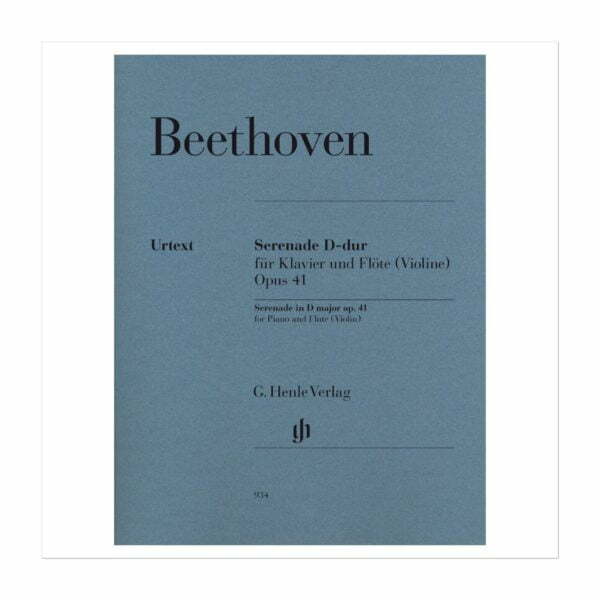 The Serenade op. 41 is based on Beethoven’s Opus 25 for flute, violin and viola. Although the version for piano and flute (or violin) did not originate from the composer – but was probably undertaken by the composer Franz Xaver Kleinheinz –, Beethoven did, however, “look through it and substantially improve some passages”, as he assured his publishers Hoffmeister & Kühnel in September 1803. With the accolade “revue par l’Auteur”, the arrangement was soon widely disseminated. We are publishing a revised edition of this charming serenade, incorporating the latest scholarly Beethoven research (to date HN 301). It contains new, extensive texts concerning the genesis and source situation.